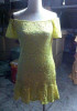 Casual Yellow Patchwork Lace Ruffle Boat Neck Mini Dress