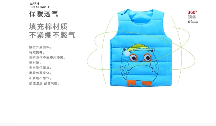 2017 new Girl Vest Children's Down Cotton Warm Baby Vest 1-8 Years Boy Vest owl Waistcoat High Quality Kids Vest Outerwear#TZ005