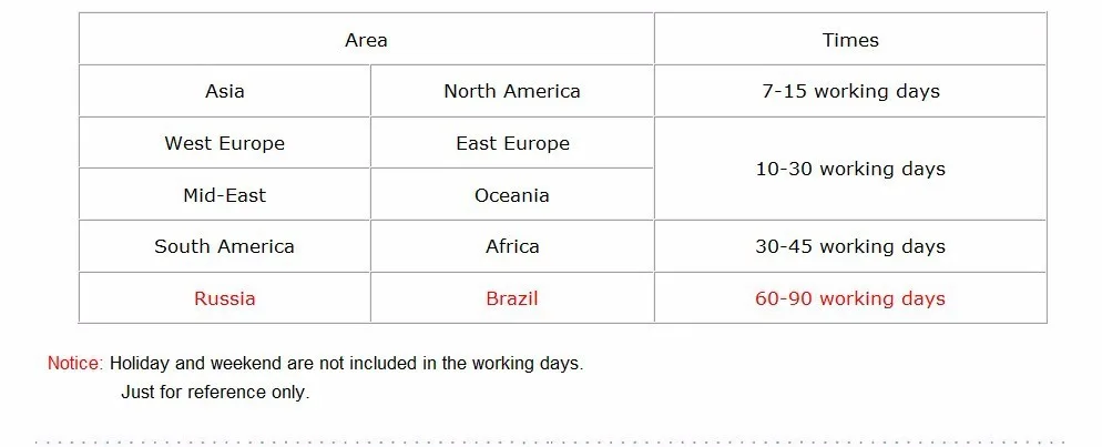 | Shipping | EMS, UPS, DHL, China air post, China post air mail also supported to Russia,Turkey,Brazil.ect |