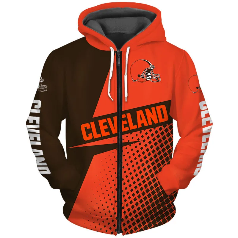 Cleveland Browns Grid Pattern 3D Zipper Hoodie