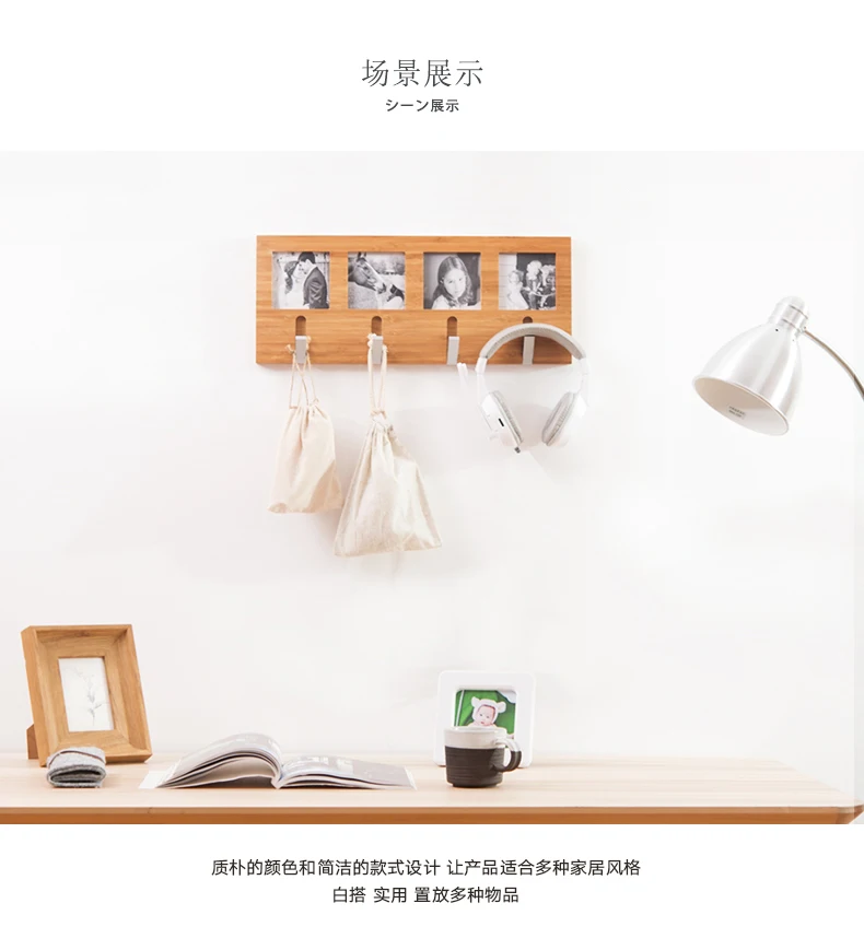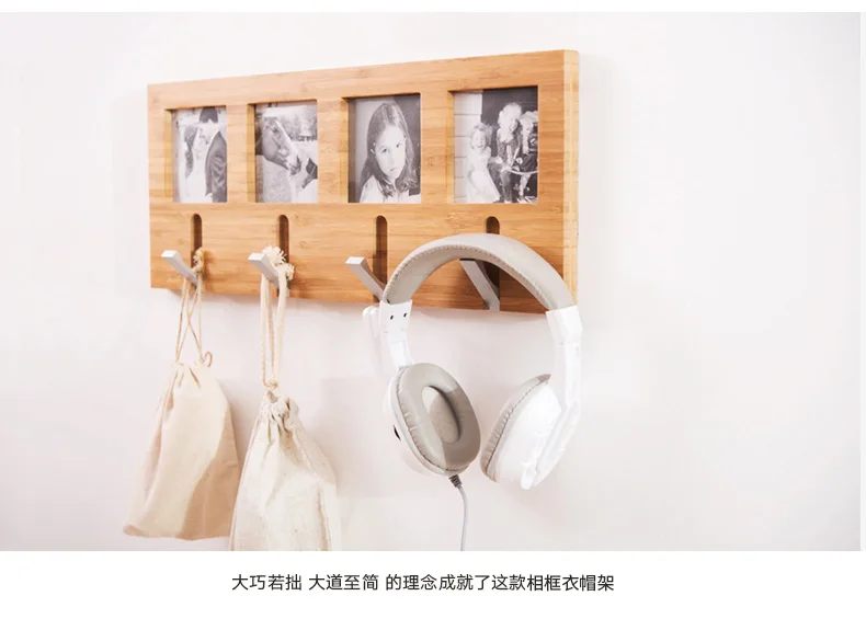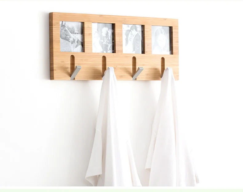 Coatrack Hanging Bamboo Wall Hanger Hook Photo Frame Wood Hanger Bedroom Coat Wall Hook Hat Coat Holder