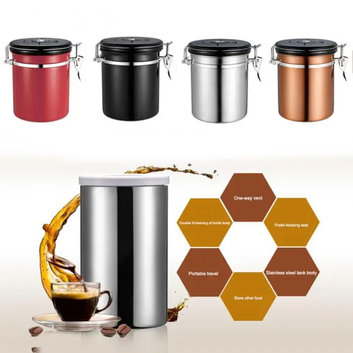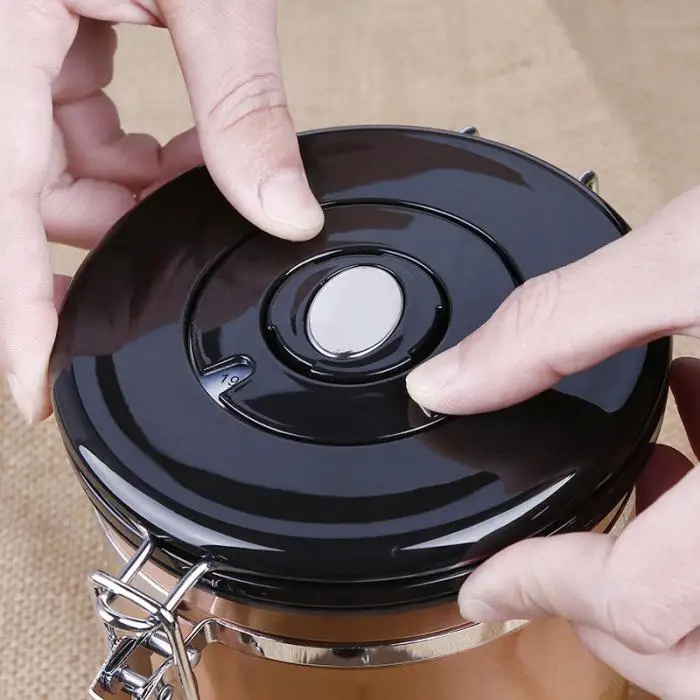 Coffee Jar Sugar Bottles Tea Storage Sealed Canister With Exhaust Valve Stainless Steel Pot Home Kitchen Accessories Hog