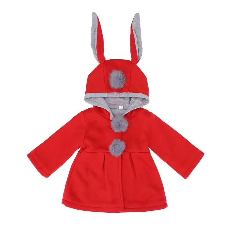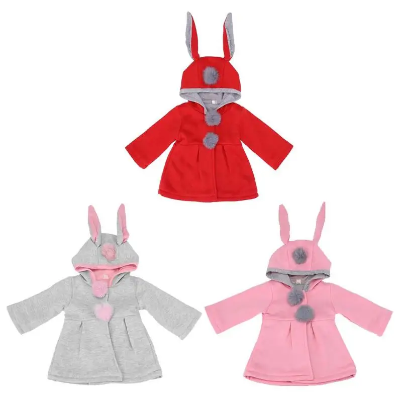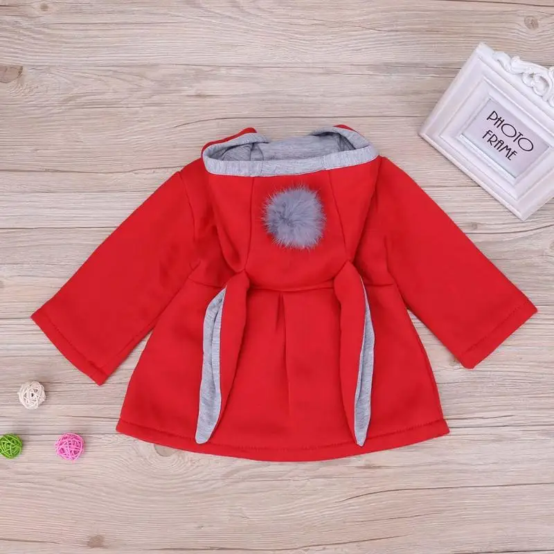 Cute Rabbit Ear Hooded Baby Girls Coat Spring Autumn Tops Kids Warm Jacket Outerwear Children Clothing Girls Coat