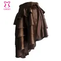 Victorian Brown Ruffle Chiffon steampunk skirt with Back Half Elastic Waistband, Chiffon cord at