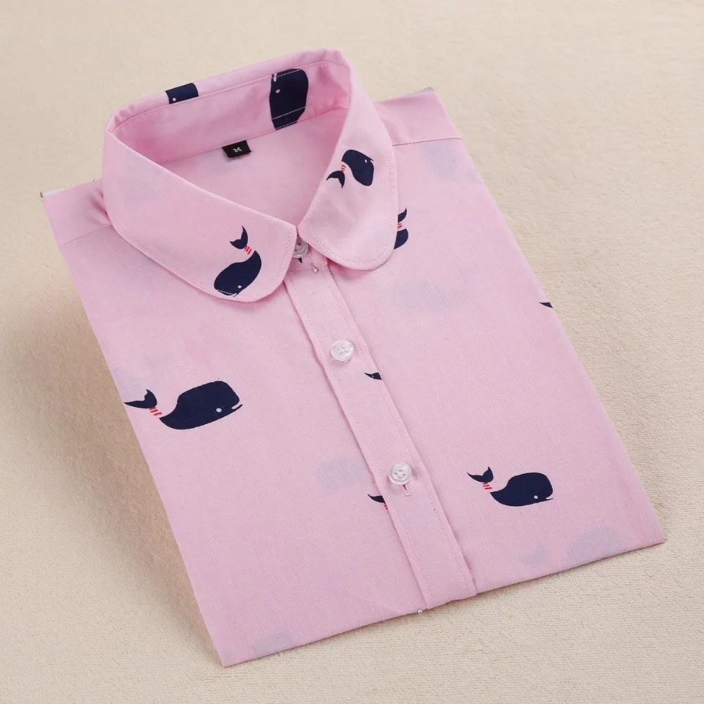 Dioufond Casual Print Shirt Cotton Floral Blouse Turn-down Collar Blouse Long Sleeve Female Shirts Plus Size New Women Clothing