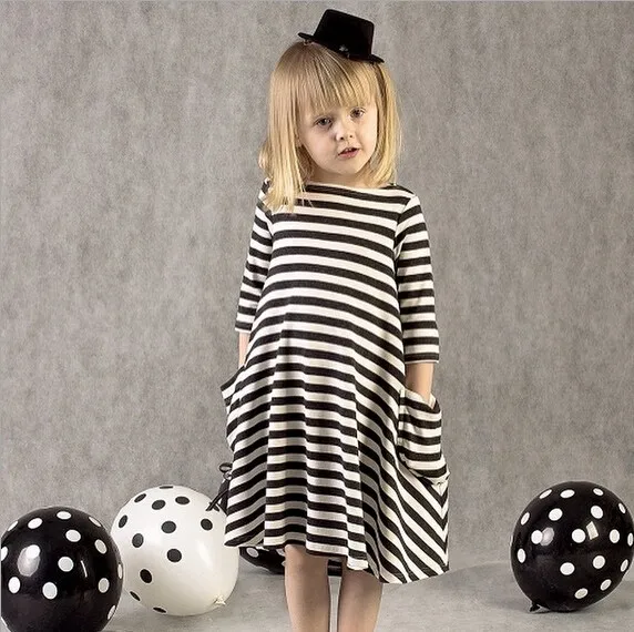 Department Name: Children;Gender: Girls;Dresses Length: Knee-Length;Sleeve Length(cm): Full;Model Number: DOZ289;Silhouette: A-Line;Pattern Type: Stri…