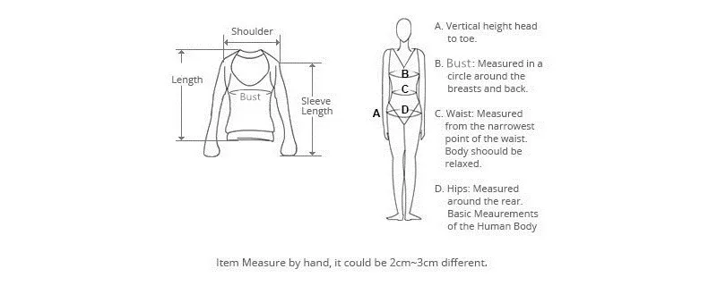 | 1. As different computers display Color differently, the Color in Stock of the actual item may vary slightly from the above images. 2.The size may have 1-2cm errors, but the Clothes can be fit for many people. | |||||