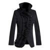 [EAM] Loose Fit Black Ruffles Split Asymmetrical Jacket New Stand Collar Long Sleeve Women Coat Fashion Spring Autumn 2020 1M005