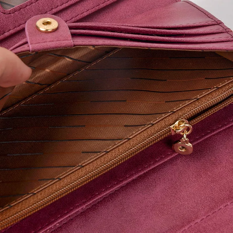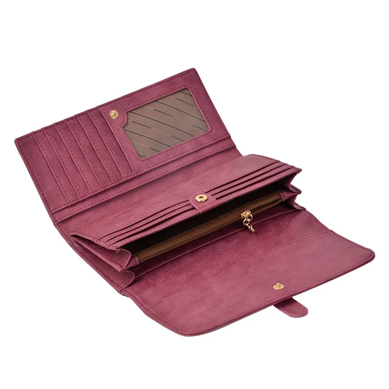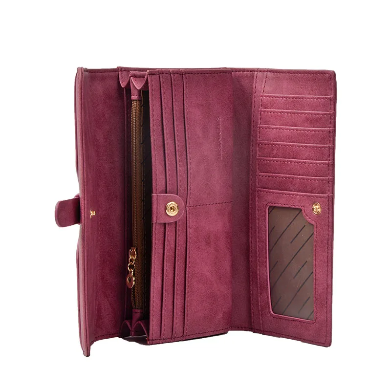 | Color | Pink, Purple, Blue, Wine Red. | Structure | 2 - Money Place, 1 - Photo Place, 12 - Card Holder, 1 - Inter Zipper Pocket ,4 - Bill Compartment, |