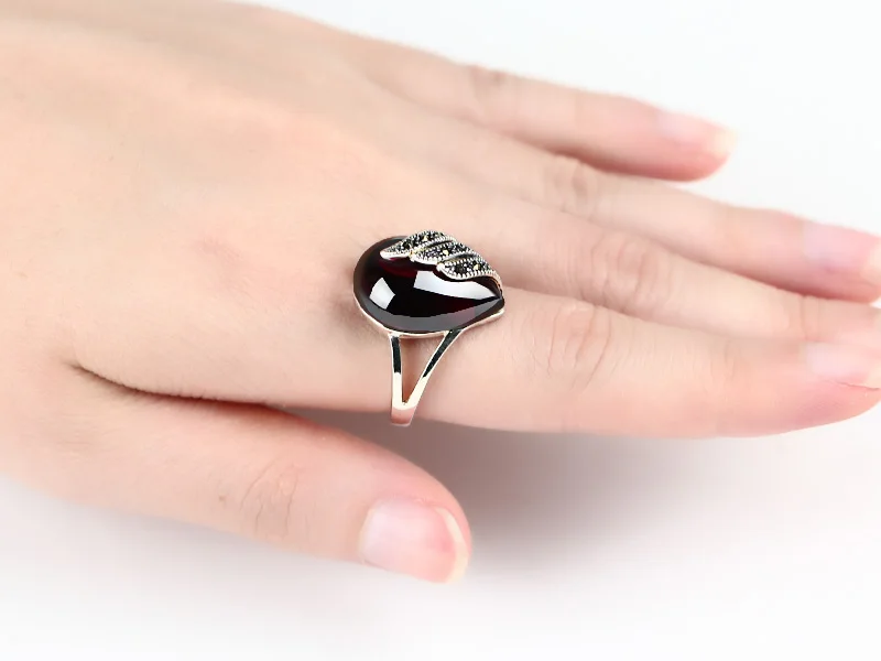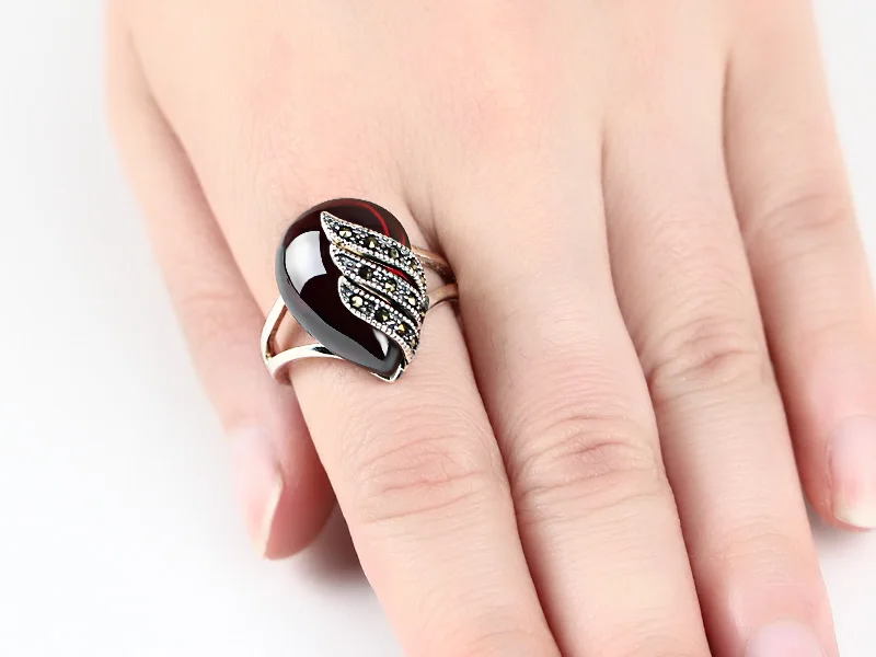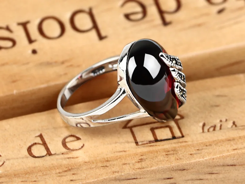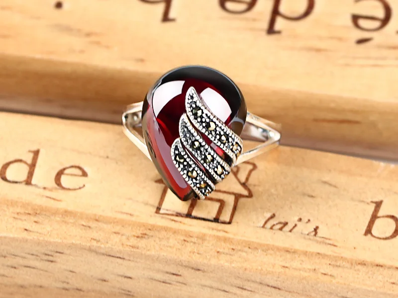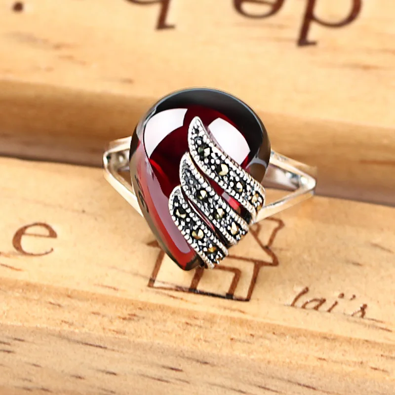 EDI Fine Jewelry Red Garnet Retro 925 Sterling Silver Ring Engagement Rings For Women Female Jewellery