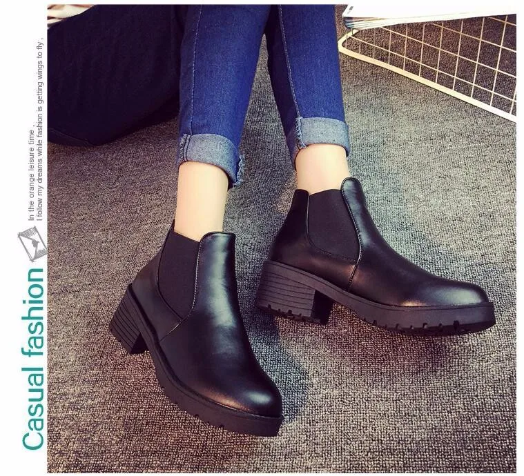 EFFGT 2017 new Hot style Fashion women boots Round head thick bottom PU leather waterproof woman Martin boots free shipping