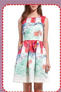 ElaCentelha Women Summer Dress Childlike Graffiti Hand Painted Print Woman New Fashion Sleeveless O Neck A Line Swing DressesUSD 49/piece