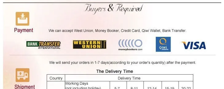 size table: