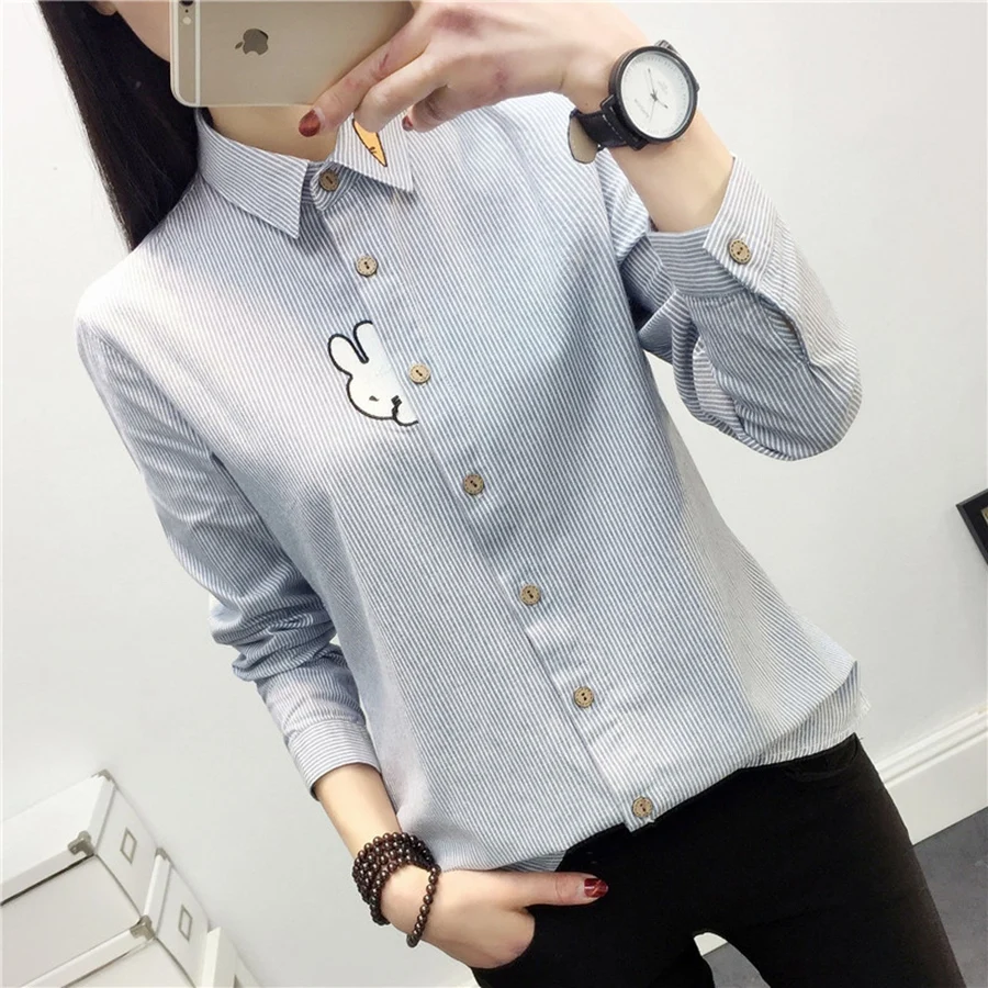 Embroidery Women Blouses Long Sleeve Striped Blouse Shirt Women 2017 New Spring Korean Fashion Casual Female Tops Shirts Women