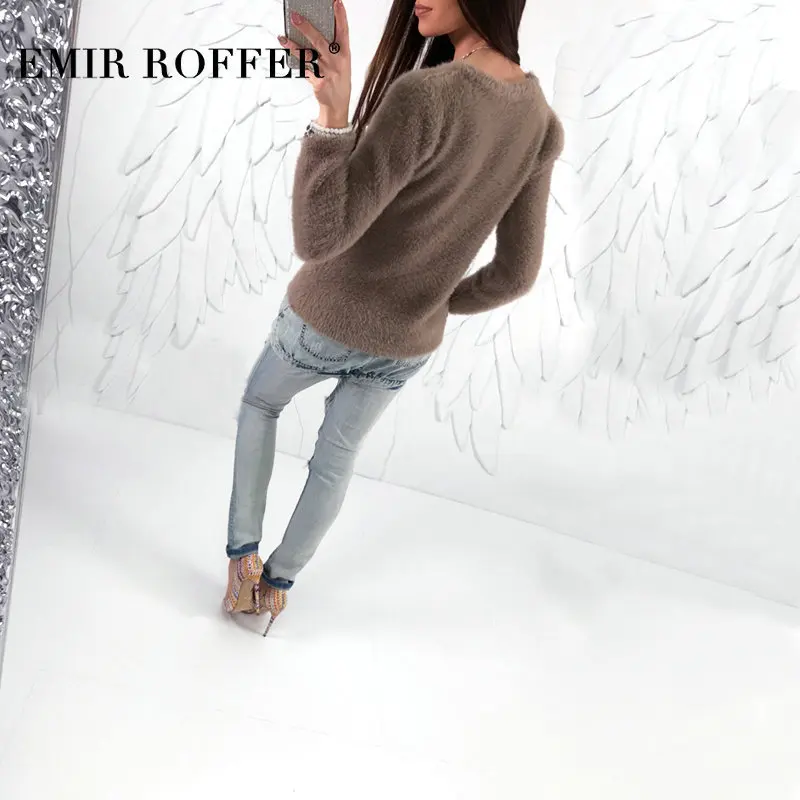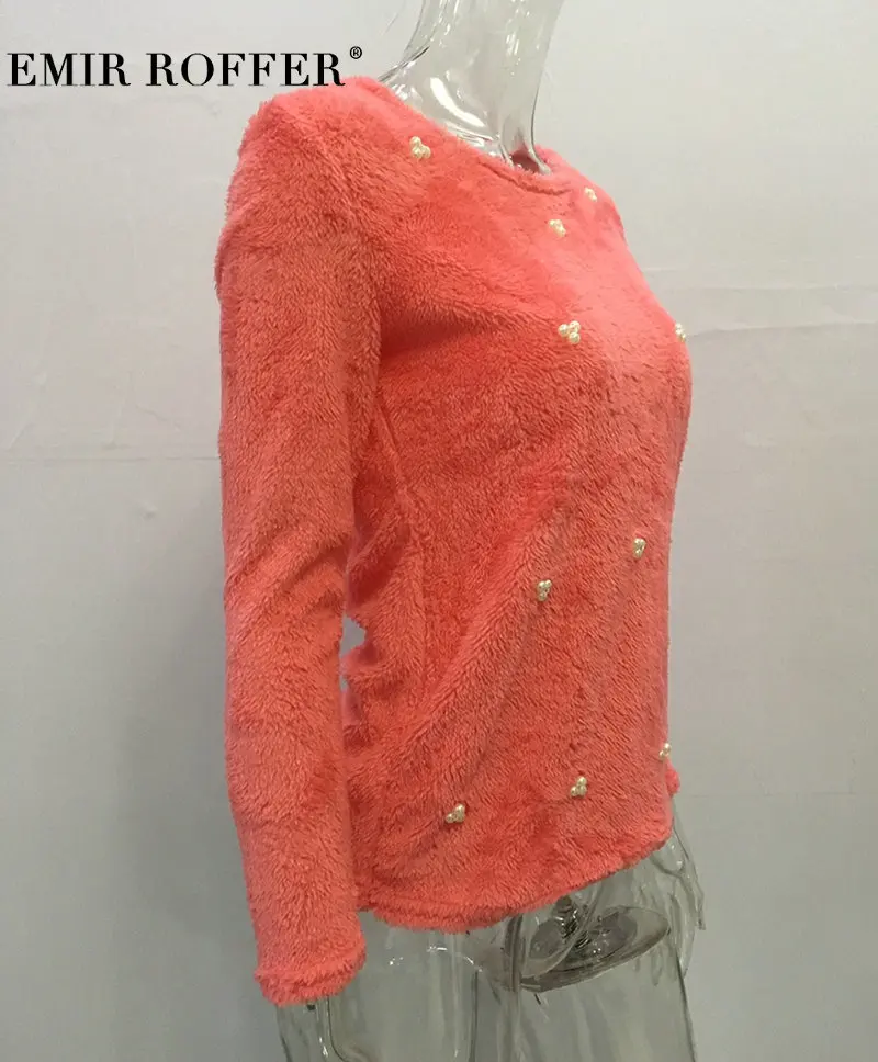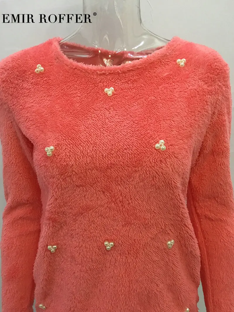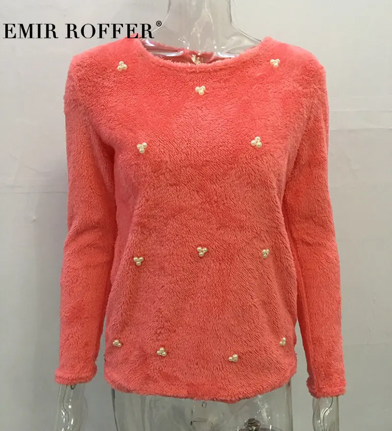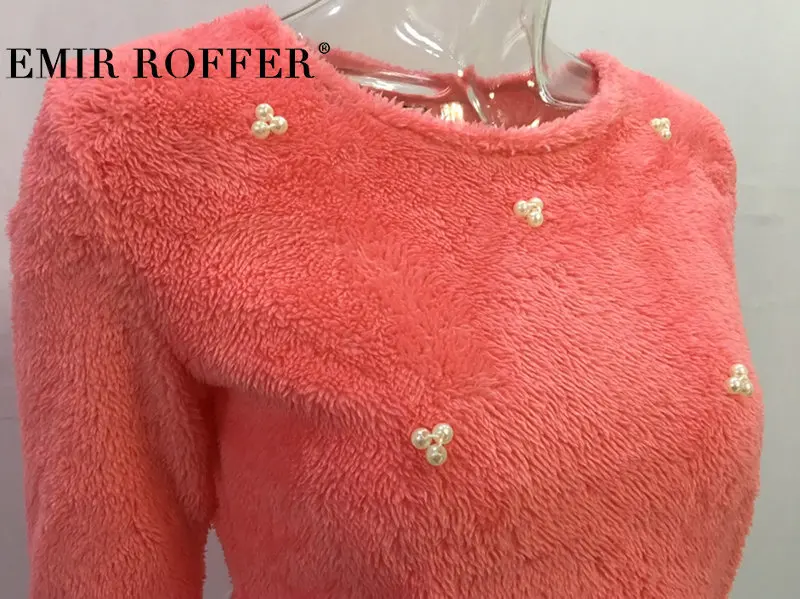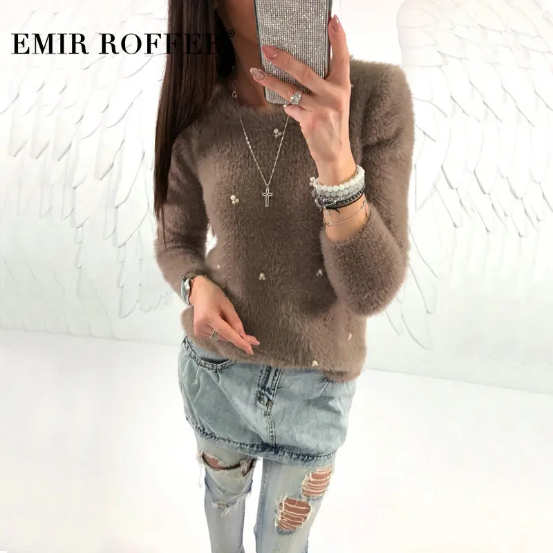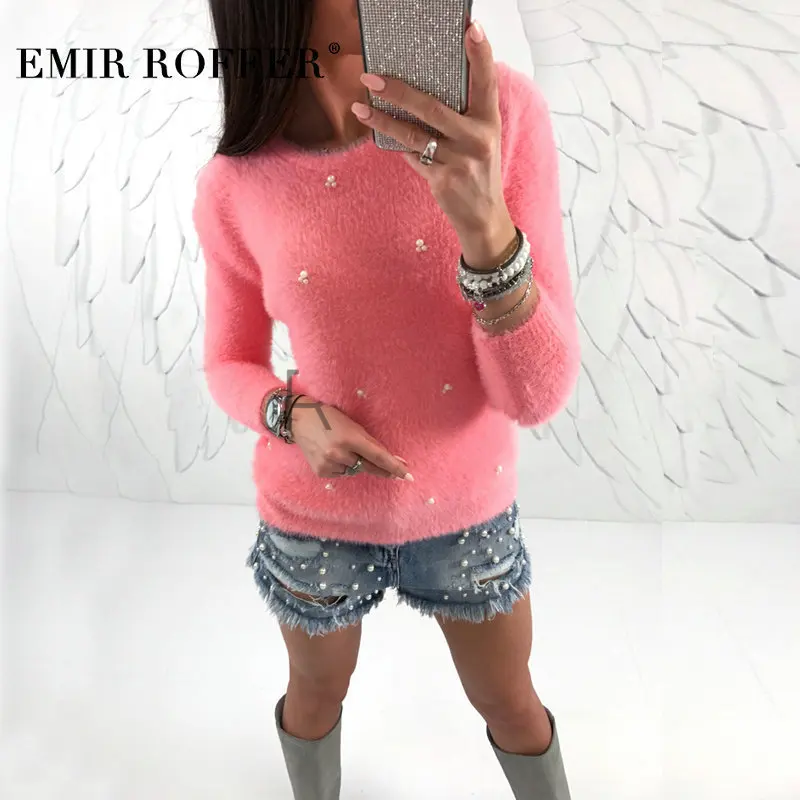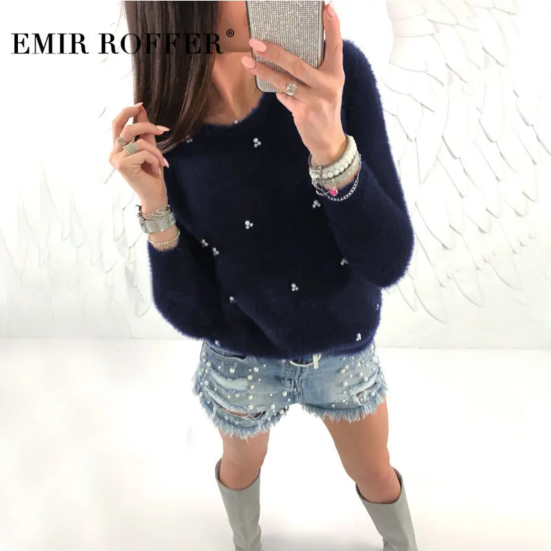 EMIR ROFFER Fashion Pearl Embroidery Women's Sweater Knitting O Neck Long Sleeve Autumn Winter Female Jumper Pullover Clothes