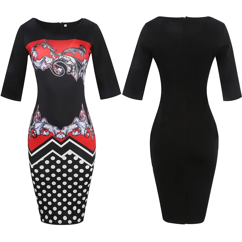 Gender: Women;Dresses Length: Knee-Length;Season: Summer;Style: Vintage;Silhouette: Pencil;Material: Polyester,Cotton;Sleeve Style: Regular;Model Number: FT-1011;Brand Name: fantaist;Sleeve Length(cm): Half;Decoration: None;Neckline: O-Neck;Pattern Type: Print;Waistline: Natural;