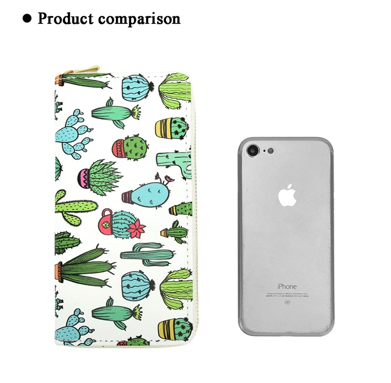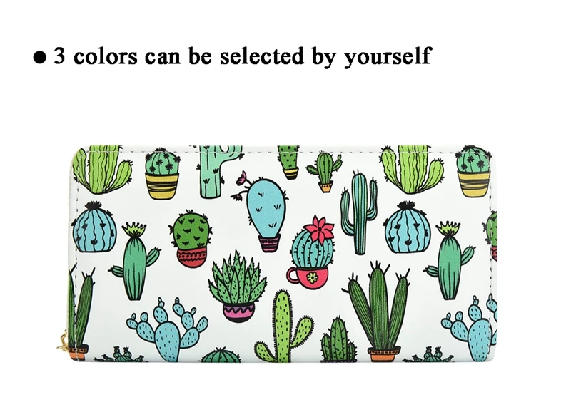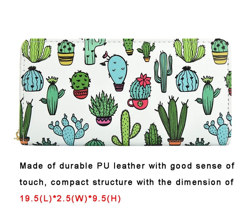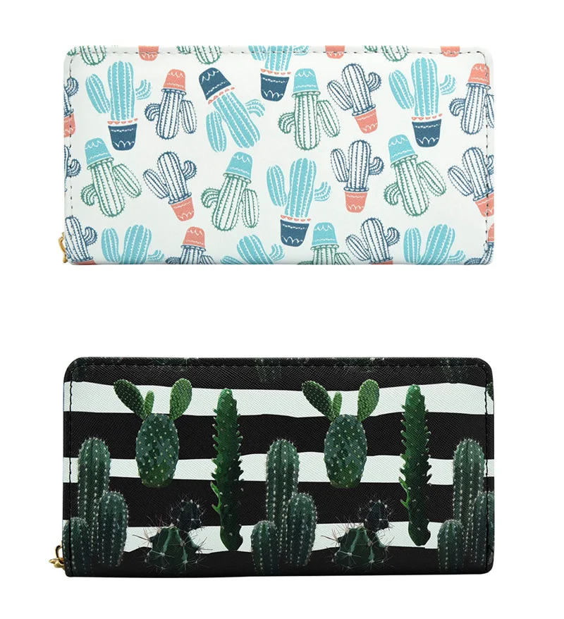 Wallets Women Cute Pattern Cactus Prints Cards Slots Phone Bag Purses Ladies Zipper Money Pockets Coins Purses Women Wallets