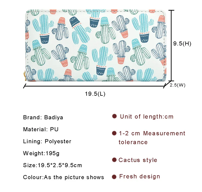 Brand Name: Badiya;Main Material: PU;Gender: Women;Style: Fresh;Pattern Type: Cartoon;Closure Type: Zipper;Wallets: Standard Wallets;Wallet Length: Long;Item Height: 2.5cm;Item Length: 19.5cm;Item Weight: 195 g;Item Width: 9.5 cm;Material Composition: PU Leather;Model Number: WW05589;Lining Material: Polyester;Interior: Card Holder,Interior Compartment,Zipper Poucht,Note Compartment,Coin Pocket,Interior Zipper Pocket,Interior Slot Pocket,Cell Phone Pocket;Item Type: Wallet;