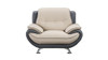 Instantly transform your room with the addition of this contemporary style luxurious chair. Constructed from quality wood, this chair features a premium gray faux leather upholstered scooped seat with cream colored cushioning , providing comfortable seating. Pillow top armrests with welting trim details add an elegance to this chair while the stainless steel constructed slender legs in silver finish offers great support and sturdiness to the whole structure. Perfect to be placed in your living room or bedroom for great seating experience.