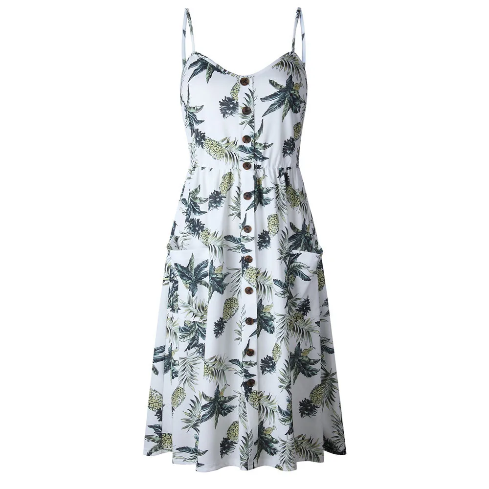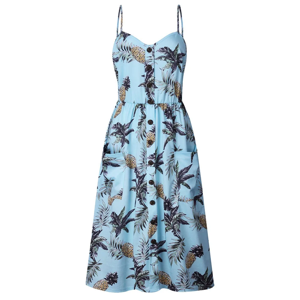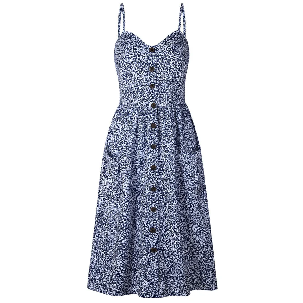 Women Sexy Printing Buttons Off Shoulder Sleeveless Dress Princess Dress