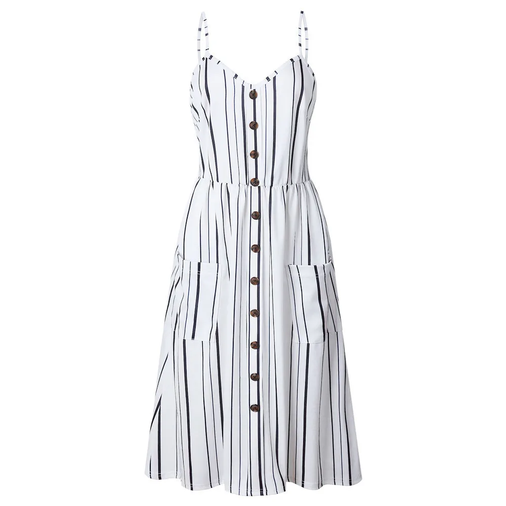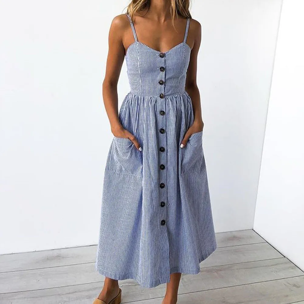 FeiTong Sexy v neck print summer dress Women sleeveless boho casual midi dress Female 2018 Stripe long dress vestidos Sunflower