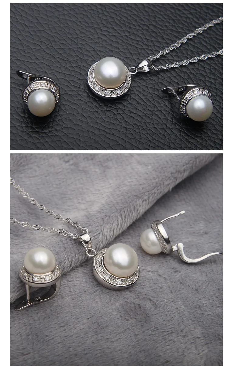 FENASY Nice Freshwater Pearl Jewelry Sets 925 Sterling Silver pendant Necklace,Pearl Earrings and ring for Wedding Jewelry Sets
