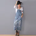 Free Shipping 2016 New Fashion Loose Denim Dresses With Holes Jeans Suspenders One Piece All-match Long Maxi Summer Ladies Dress