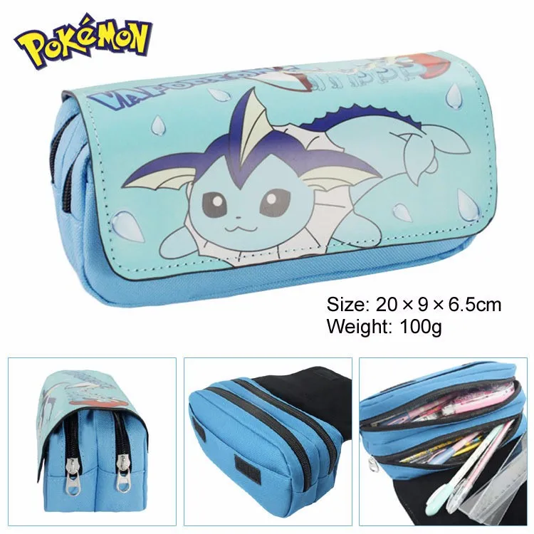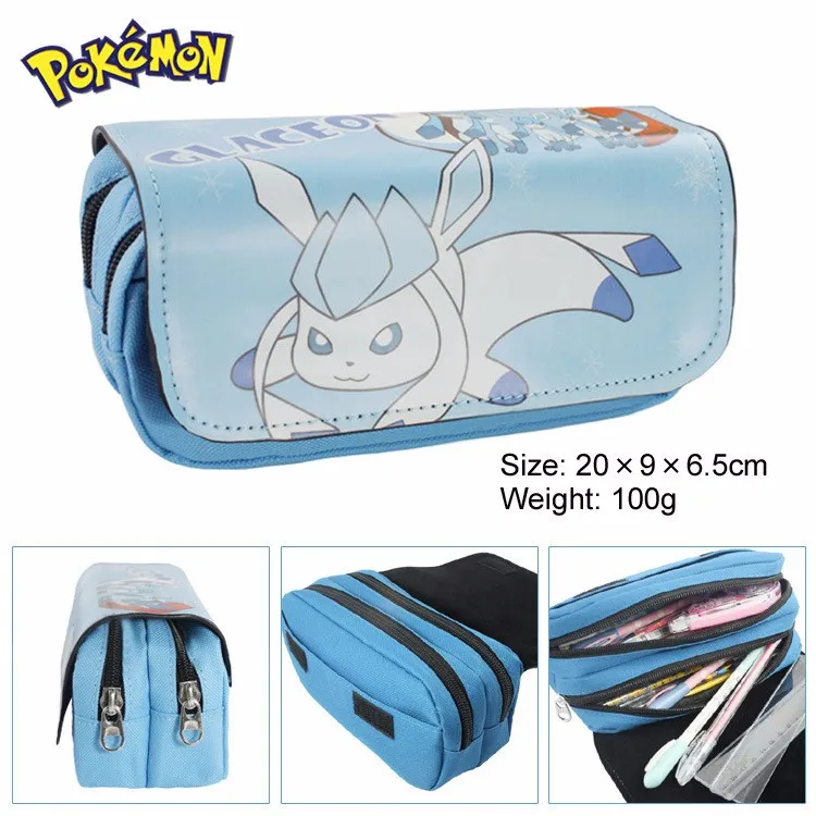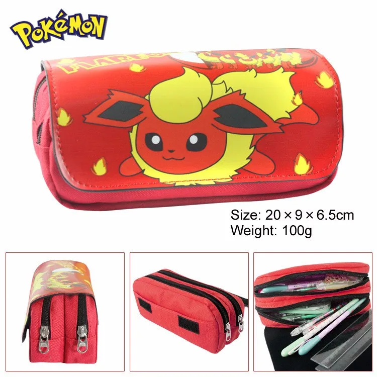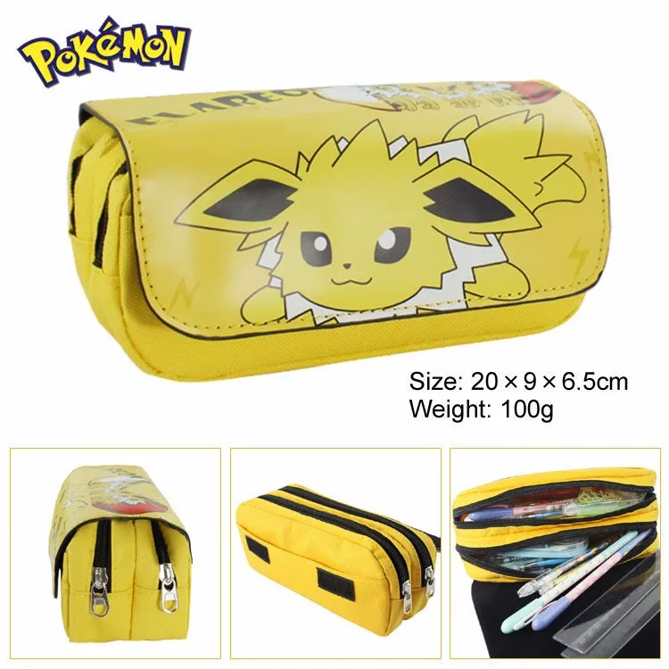 Free Shipping Pokemon Eevee Pencil Pen Case Game Poke Go Cosmetic Makeup Coin Pouch Double Zipper Bag