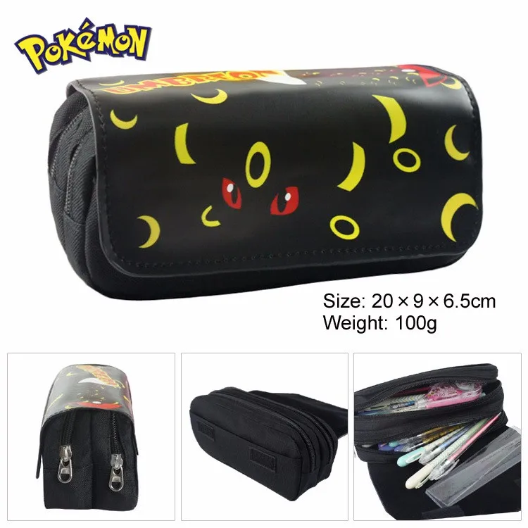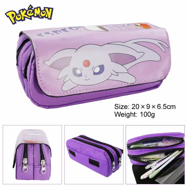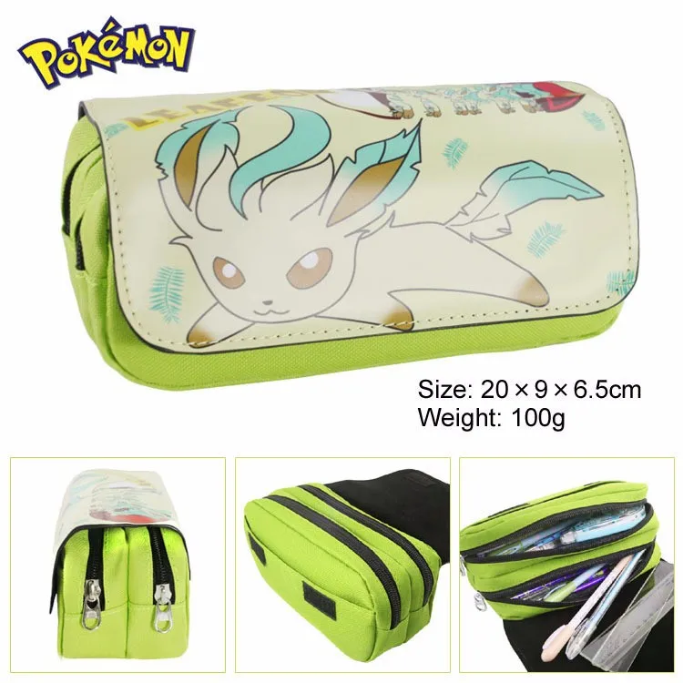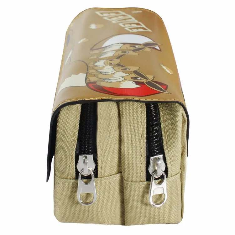 Free Shipping Pokemon Eevee Pencil Pen Case Game Poke Go Cosmetic Makeup Coin Pouch Double Zipper Bag