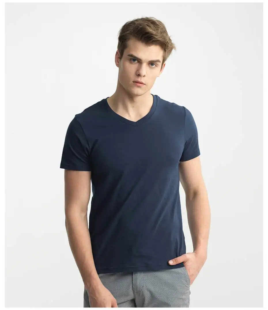 Giordano Men T-shirt V-neck Base Tee Short Sleeves T Shirt Men Brand Clothing Camisa Masculina Casual Jersey Tshirt