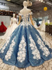 Glitter Blue Off The Shoulder Lace Up Long Ball Gown Wedding Dresses Princess Dress W0027