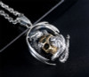 Gold-Plated Skull and Dragon 925 Sterling Silver Vintage Punk Rock Biker Pendant Necklace
