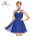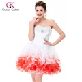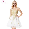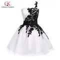 Grace Karin One shoulder puffy Lace Short Prom Dresses 2017 White Black Blue Yellow Organza sexy Evening prom Gowns 4288