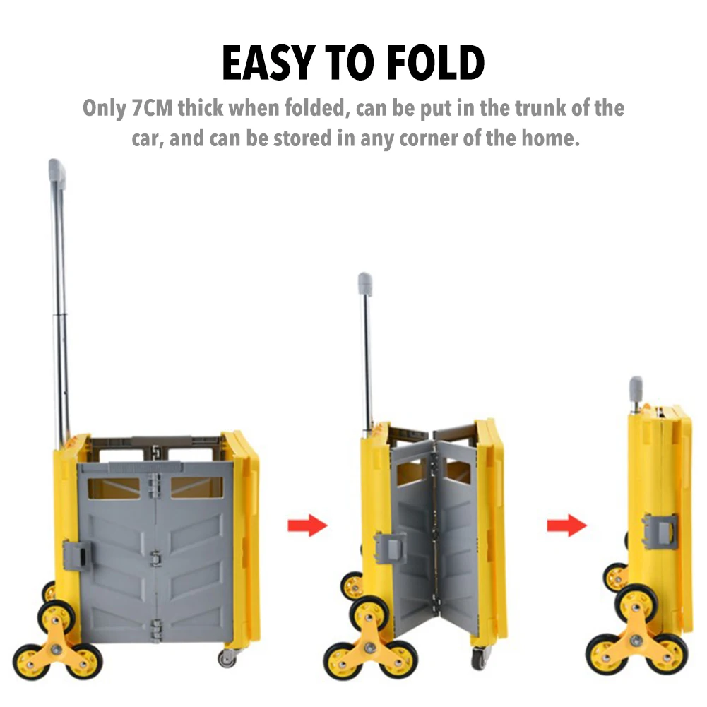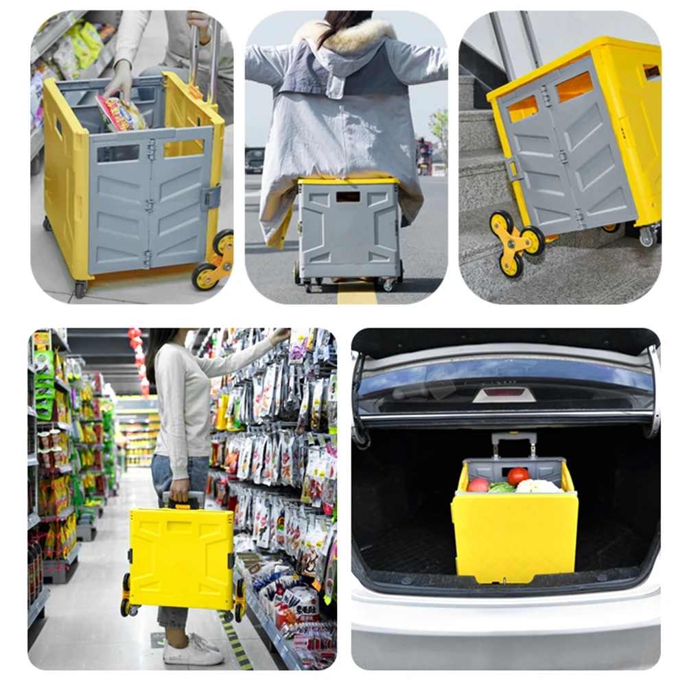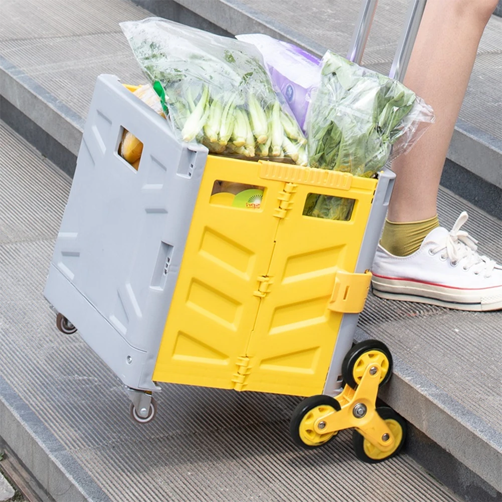 1. Practical and Beautiful: Ultra-practical and beautiful cart basket releases your hands and makes your shopping easy and enjoyable. 2. Premium Material: Made of recycled plastic, can hold a 50Kg capacity cart-heavy-duty folding strong trolley. 3. Upgrade models: A total of 8 large wheel designs. Including soft rubber wheels, smooth rolling, aluminum alloy hand lever, with foldable cover, the trolley is strong and durable. 4. Easy to Fold: Only 7CM thick when folded, can be put in the trunk of the car, and can be stored in any corner of the home. 5. Wide Application: Ideal for shopping, fishing, car boots, camping, laundry, cosmetics, festivals, teaching, etc.!