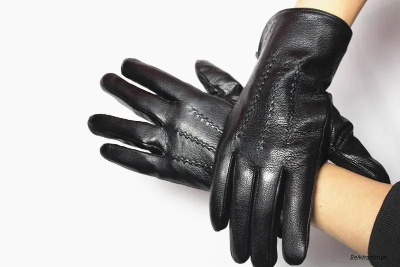 Guantes Winter Gloves Men's Leather Gloves Deerskin Thickened Water Wave Style Fake Lining Autumn And Winter Warm Free Shipping
