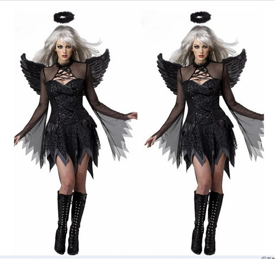 Product type:Halloween Devil angel bride demon Scary costumesProducts include:Headband+wings+dress Size chart (CM) Size Length Bust Wais…