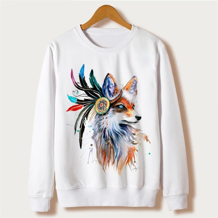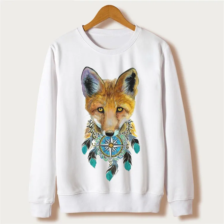 Harajuku Fox Spring 2018 lady Clothing Women Hoodies Sweatshirt Full Sleeve O-neck Animal Print Moletom Feminino Sudaderas Mujer