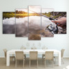 HD Printed 5 Piece Canvas Art Canvas Lake Fishing Rod Painting Wall Pictures Living Room Modern