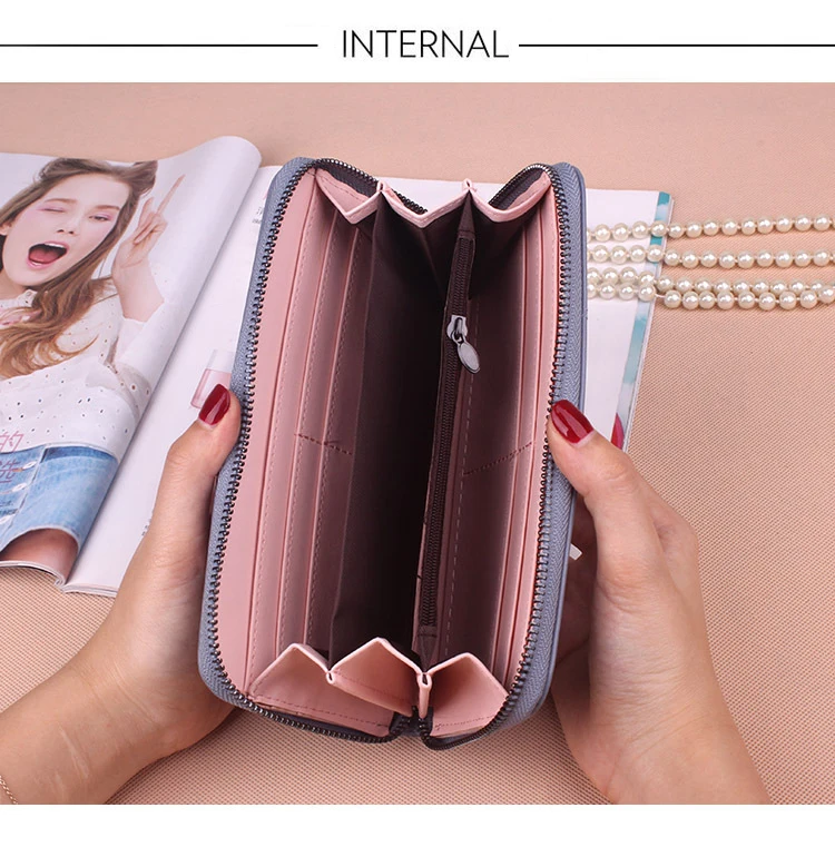 High Capacity Fashion Women Wallets Long Dull Polish PU Leather Wallet Female Double Zipper Clutch Coin Purse Ladies Wristlet