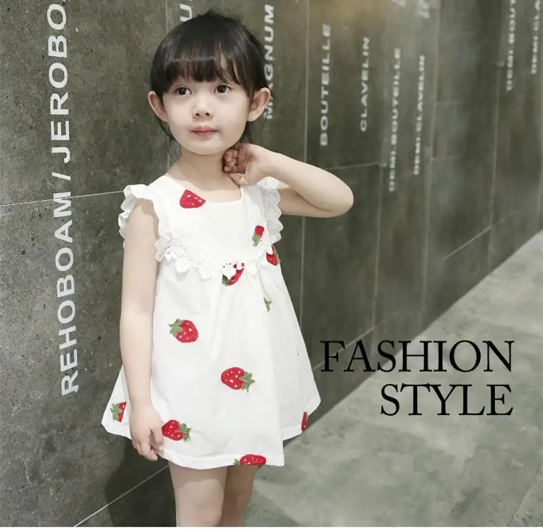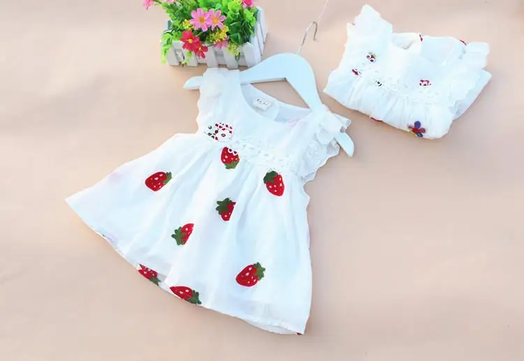 High Quality 0-2 Year Baby Girl Dress Girls Summer Embroidery Flower Strawberry Cotton Dress Infant Girl Baby 1 Year Birthday Dress