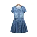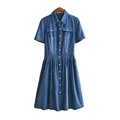 high qualhigh quality 2016 denim dress summer and autumn clothing plus size women dress elegant slim cowboy casual dress Free shipping