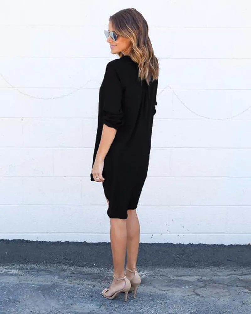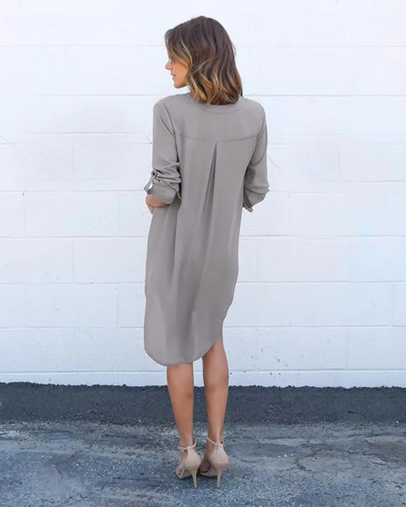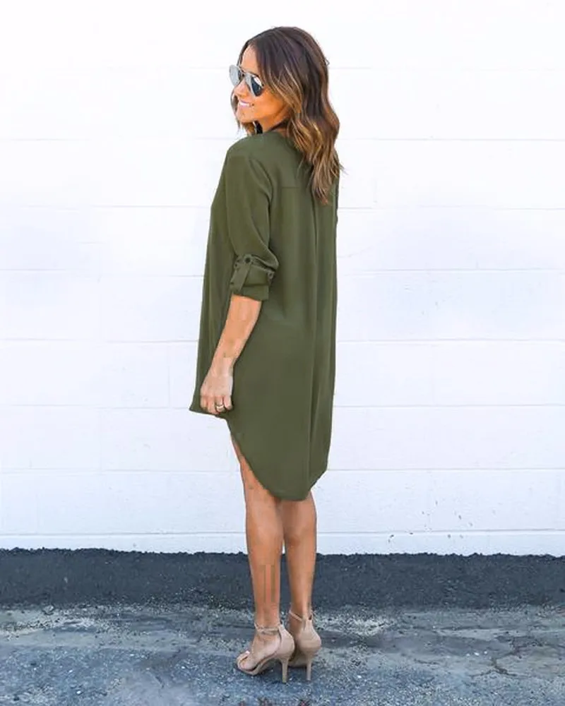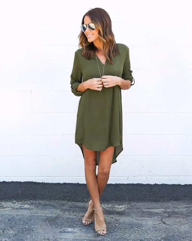 Gender: Women;Dresses Length: Knee-Length;Sleeve Length(cm): Full;Silhouette: Asymmetrical;Neckline: V-Neck;Model Number: LA1180B;Style: Casual;Sleeve…