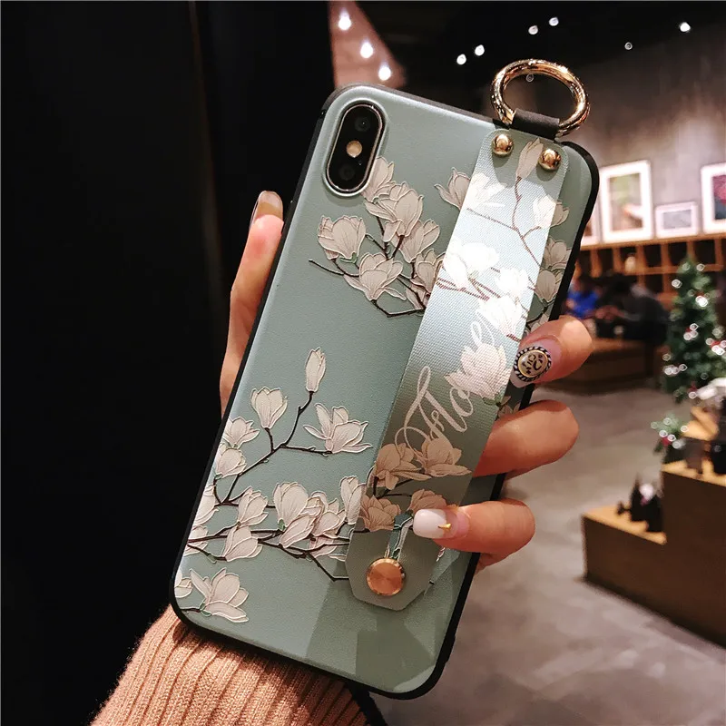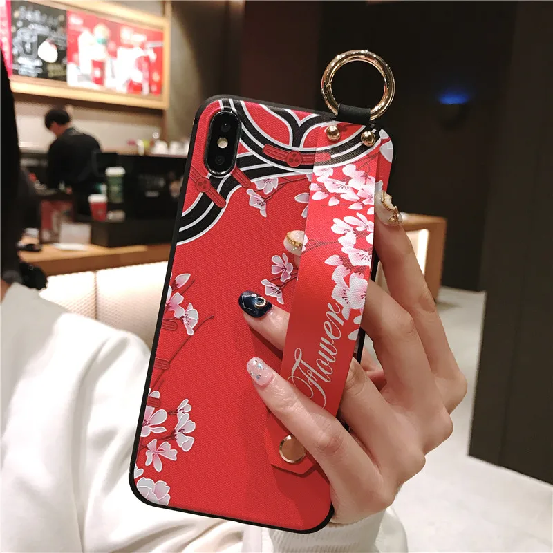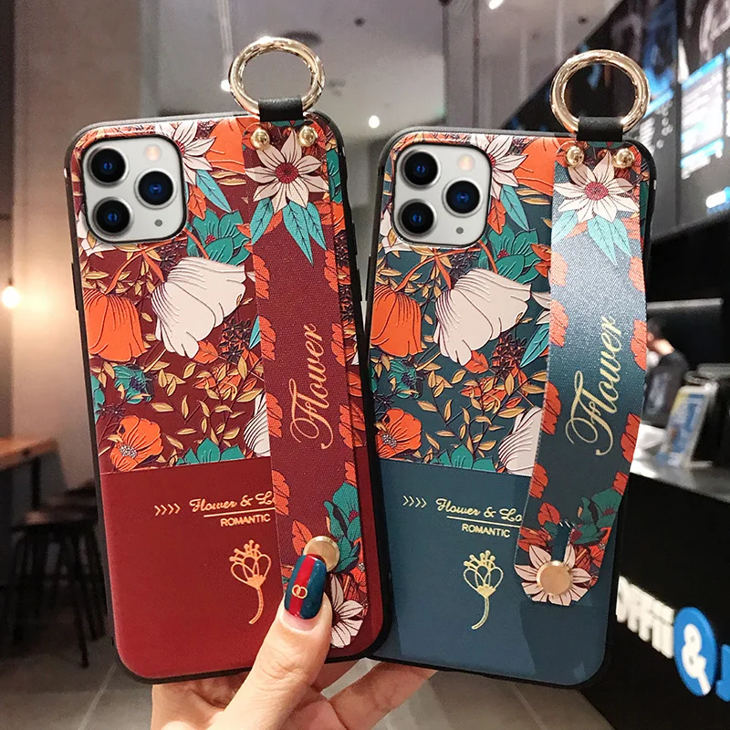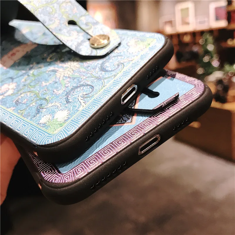 High Quality Vintage Pattern Wrist Strap Case for iPhone