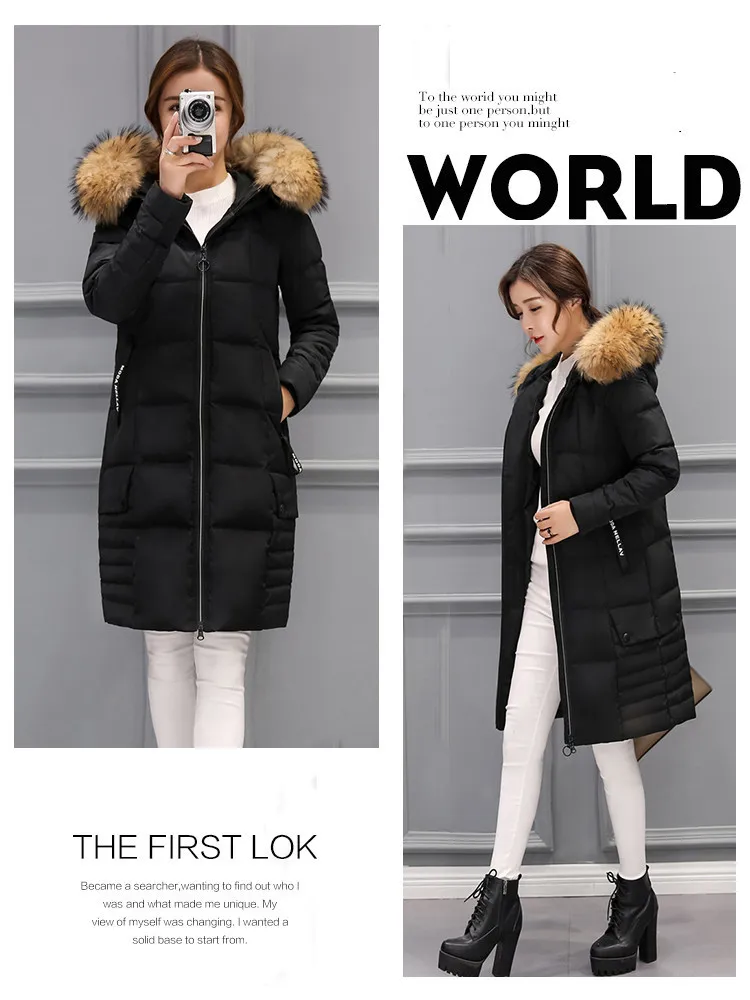 HIJKLNL 2017 New Winter Overcoats Long Down Coats For Women's Letter Down Jacket Female Hooded Down Parkas With Fur Collar LZ434