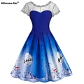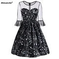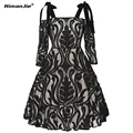 HimanJie Lace Patchwork Women Vintage Dress Autumn Winter Sleeveless Pin Up Rockabilly Plus Size Retro Robe Female Party Vestido