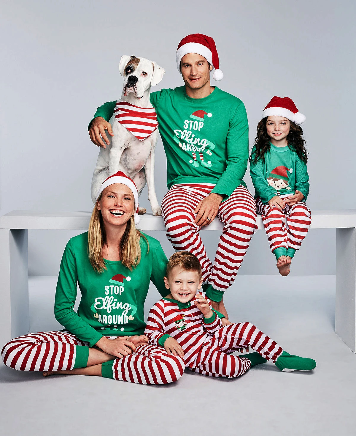 HIRIGIN Family Matching Christmas Outfits Pajamas Set Striped Family Clothing Parent-Child Family Set Sleepwear Nightwear Suit