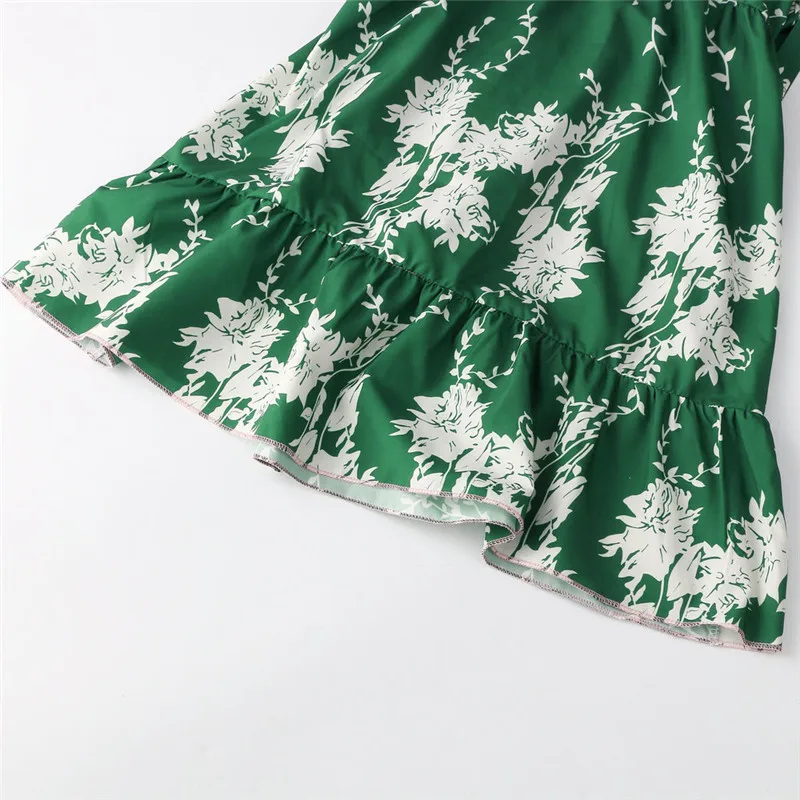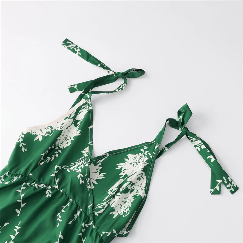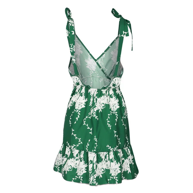 Hirsionsan Short Bohemian Dress 2017 Summer Women Sundress Sexy V-neck Floral Print Boho Dress Backless Green Beach Sundress