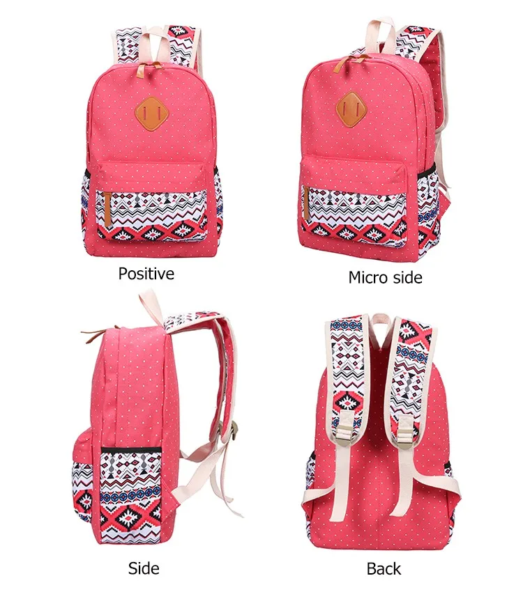 Item Type: Backpacks;Style: Fashion;Brand Name: kunzite;Gender: Women;Lining Material: Polyester;Closure Type: Zipper;Pattern Type: Dot;Decoration: Flowers;Carrying System: Arcuate Shoulder Strap;Model Number: yang /d3940;Rain Cover: No;Interior: Computer Interlayer,Cell Phone Pocket,Interior Zipper Pocket,Interior Slot Pocket;Main Material: Canvas;Backpacks Type: Softback;Handle/Strap Type: Soft Handle;Capacity: 36-55 Litre;Exterior: None;Technics: solid;main material: Canvas Printing Backpack Set;laptop backpack color: black,blue,sky blue,red,purple,gray,khaki;bagpack interior: cell phone pocket,interior zipper pocket,interior slot pocket;travel bag style: backpacks for teenage girls,school bags for girls;vintage backpack mochila: mochila feminina,school bags for teenagers;printing backpack size: medium(30-50cm)40*26*15cm canvas backpack;school bag style: backpacks for teenage girls, school backpack;school bags for teenagers style: Korean school bags,travel backpacks,school bag;sac a dos style: fashion,Preppy Style,Korean Style,Vintage,National;Printing Backpack Capacity: 36-55 Litre school bags , Bookbags,korean school backpacks;
