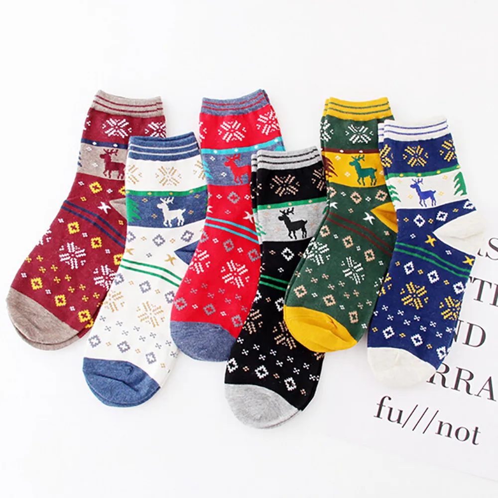 Hot Sale Winter Women and Men Christmas Socks Cotton Gift Deer Pattern Warm Ladies Funny Soft Socks Meias