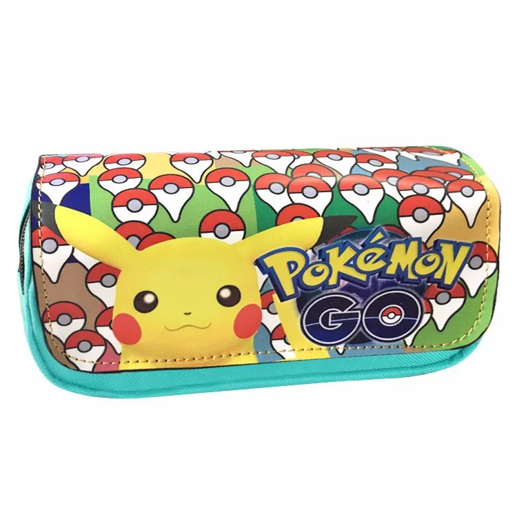 Hot Sell Game Pokemon Go Pencil Case Wallet Poke Eevee Pikachu Cosmetic Makeup Coin Pouch Double Zipper Pen Bag